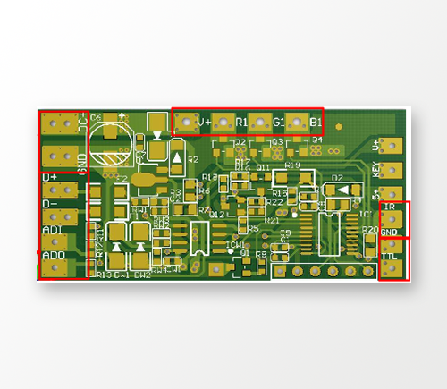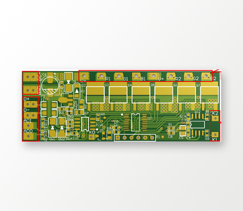 · 三组独立RGB恒压输出,内置人体感应模块,可实现全彩渐变和感应触发效果