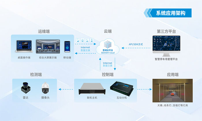 通过API或SDK的方式与停车场车辆管理系统无缝对接,实时获取及分析进入车辆和停车位的信息等。利用强大的数据分析能力,计算出最优路线,再通过灯光引导车辆快速停车,无论是固定车位还是空闲车位,都能精准指引。借助思域云平台,系统实现了远程数字化运维,具备精准交互、节能降耗、智能引导、远程监控等创新特性,让停车场管理更加便捷高效。