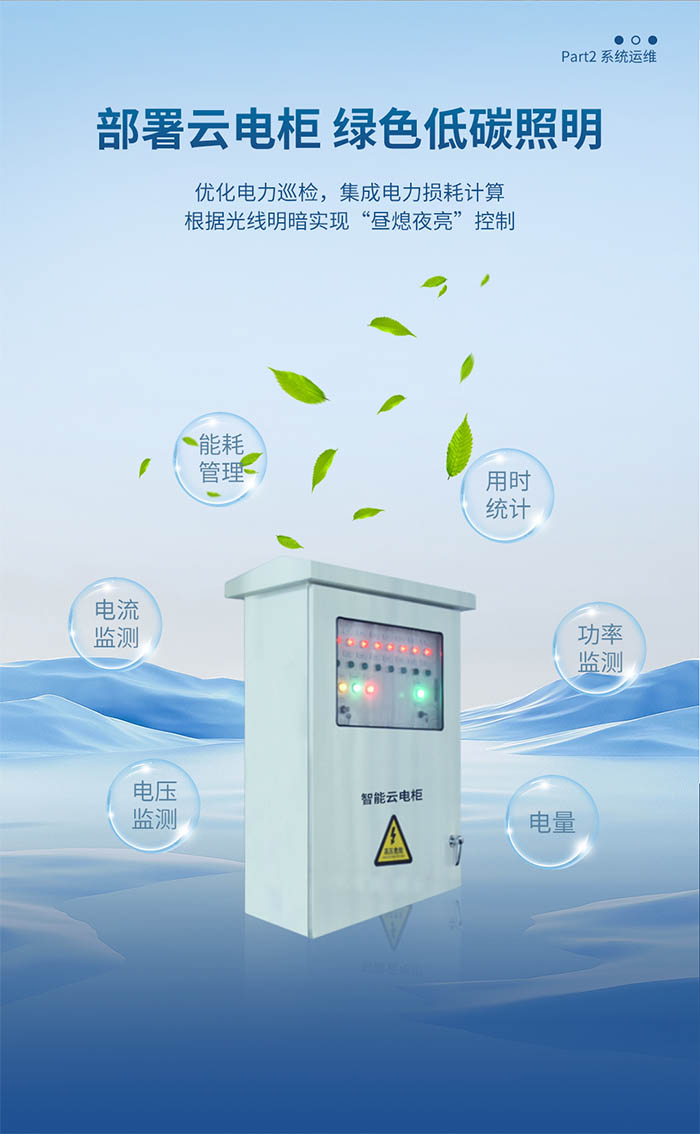 若外接光照度传感器,云电柜能自动根据光线明暗实现“昼熄夜亮”的照明控制。
