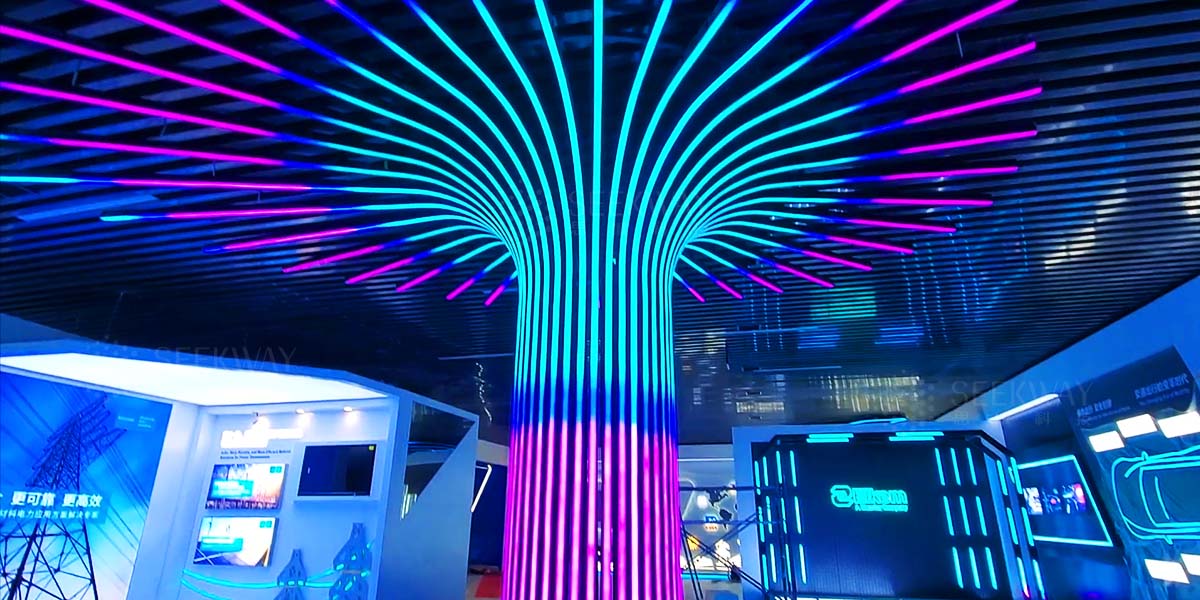 思域科技深知,唯有独特的光影表达才能成就深刻的品牌印记。作为专业级的商业场景控制系统,其内置的大容量特效素材库,提供灵动万千的色彩演绎,并确保效果的精准呈现与流畅过渡。炫彩特效在色彩、亮度、律动等美学要素上达到了完美协同,统一呈现灵动自然、丰富细腻的动态灯光效果,营造出引人入胜的光影体验。