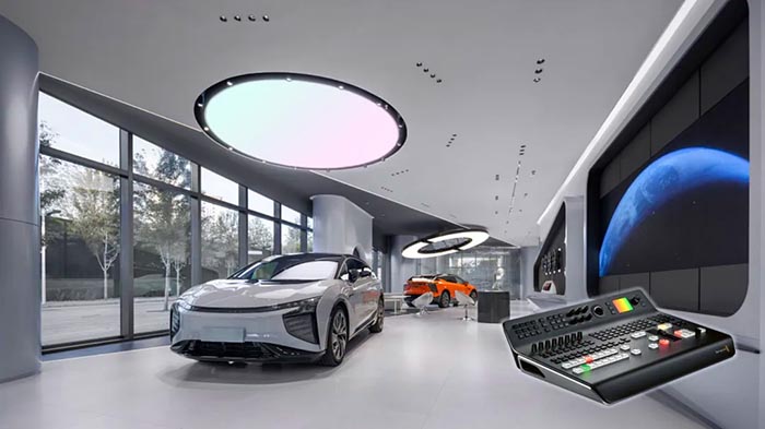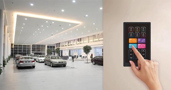 在商业门店场景,该系统应用成效显著。如汽车 4S 店用其控制展车区动态光影,通过分区亮度调节与追光效果延长顾客停留时间;还能按车型预设灯光场景,新能源车型配冷白光效、燃油车型用暖光氛围,让品牌展示更具针对性,有效提升营销效果。