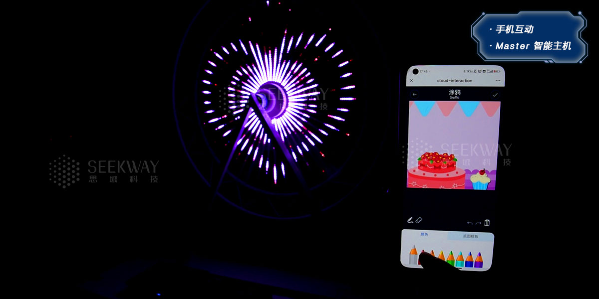【玩法三 七彩涂色】:利用七种神奇画笔,参与交互式灯光绘制,任你天马行空,参与新奇趣味互动。