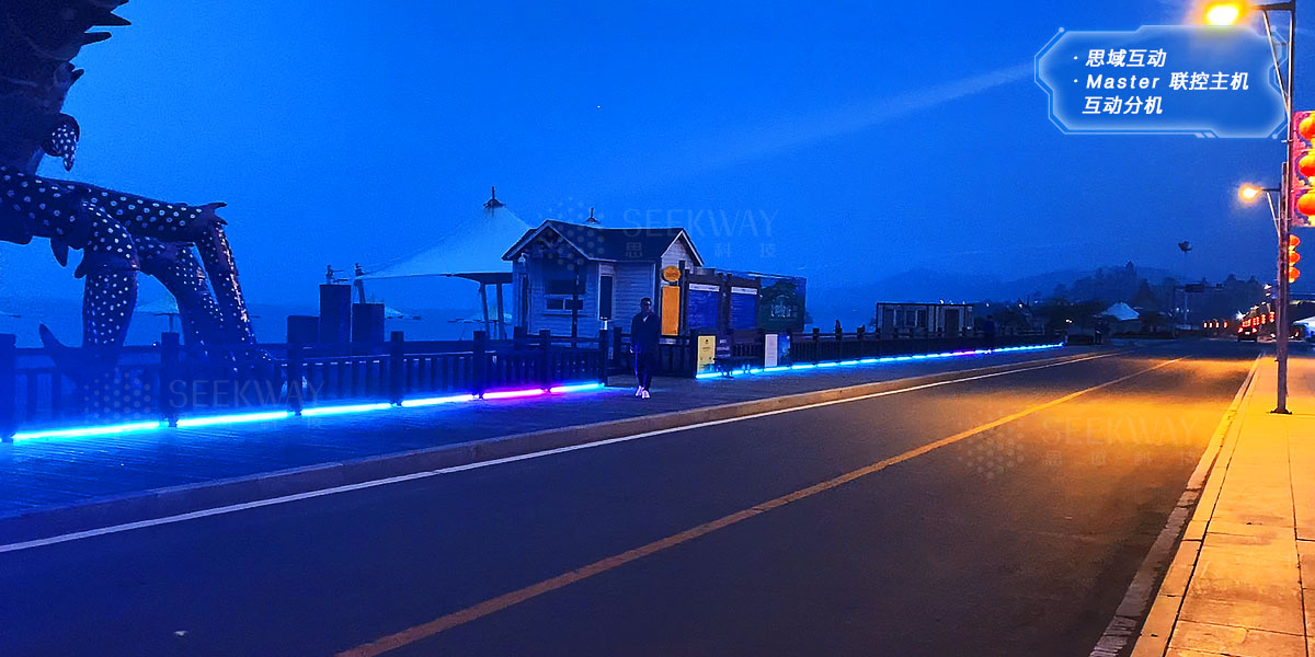 该互动步道长200米,通过接入多个雷达设备读取互动信息,实现人与灯光的实时交互。让我们与光影同行,一起漫步星空下~