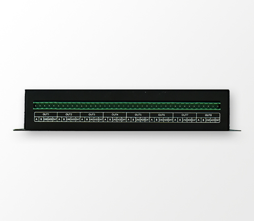 6、 8 路独立信号数据输出,控制各类常规芯片的 LED 护栏管屏、点光源屏、大功率洗墙灯等,