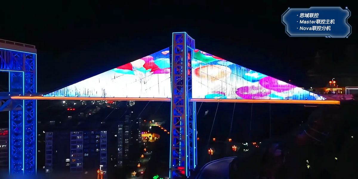 桥绘光影,夜赋吕梁!「山西吕梁阳坡塔景观桥」跨河而卧的桥身与夜色相融,思域联控系统精准控光,桥身轮廓灵动,动态光影映流水,科技与诗意交织,焕活吕梁夜间新意境~