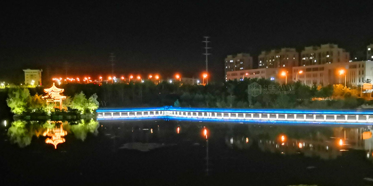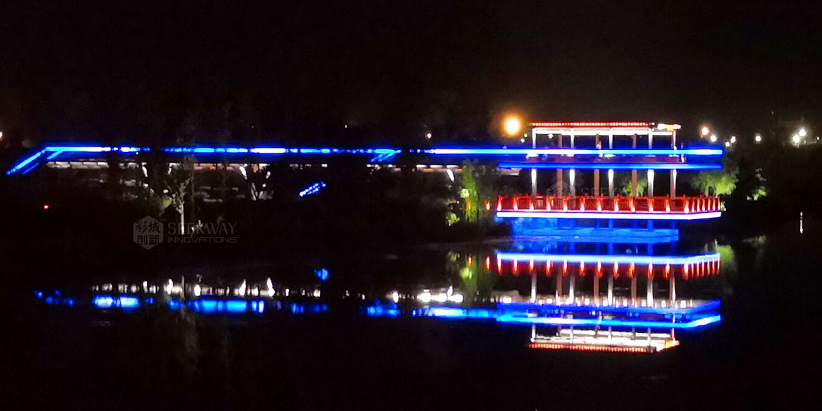 园区内景色优美的景色深受游客青睐。该园区的路灯采用了“思域LoRa云控”系统。借助本系统远距离无线控制、实时同步、强抗干扰、云端智能控制等功能,实现了园区内灯光的覆盖,辅以该系统的云端智能控制与功能,实现了所有灯光定时定点随意切换多种颜色。为园区的夜景锦上添花。